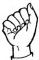 На ћирилици написано ОГЊЕН ПЕНА састоји се из 9 слова [?]. Исписано ћириличном једноручном азбуком за глувонеме: